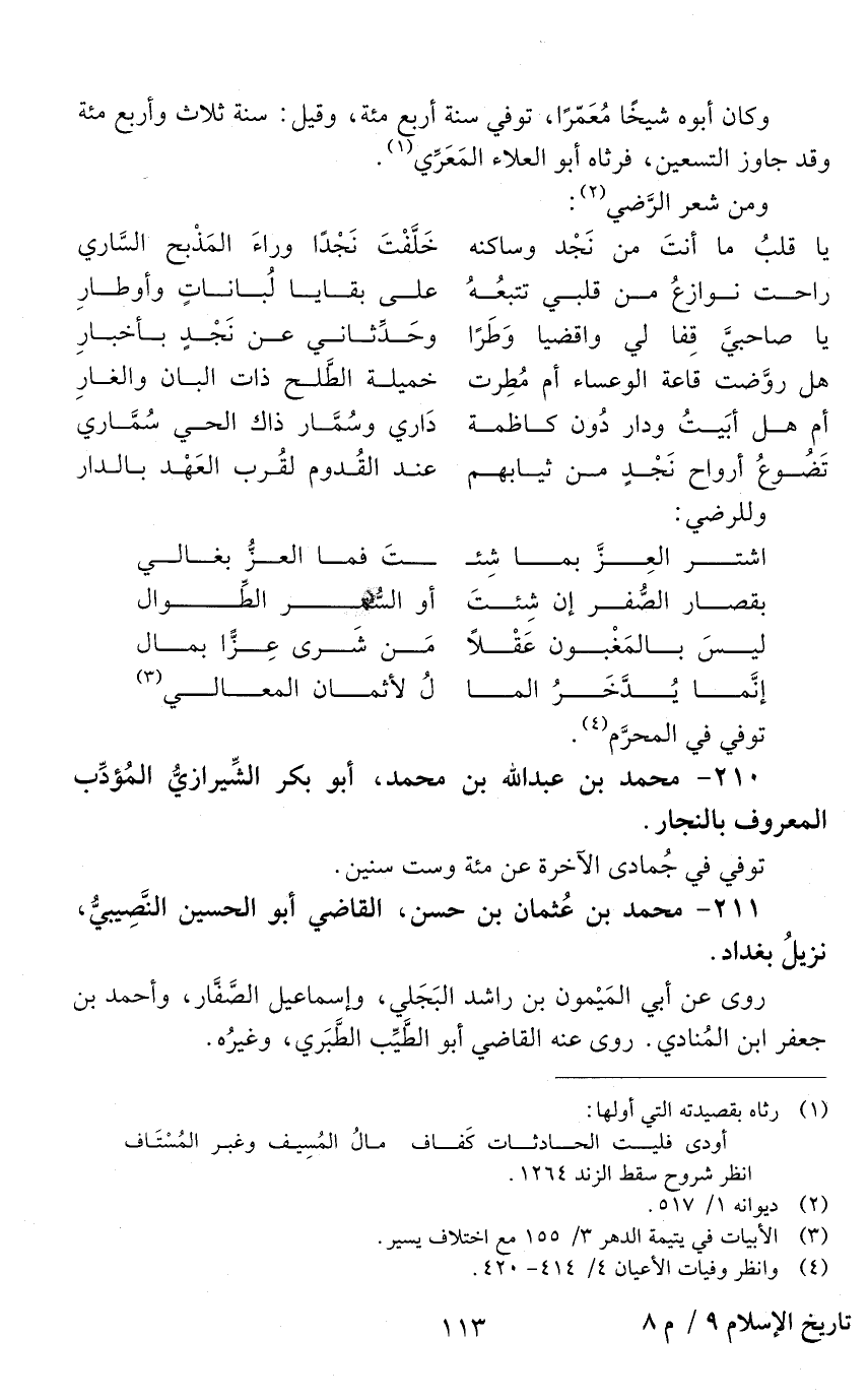 210 - محمد بْن عَبْد اللَّه بْن محمد، أبو بَكْر الشّيرازيّ المؤدب المعروف بالنّجّار. [المتوفى: 406 هـ]