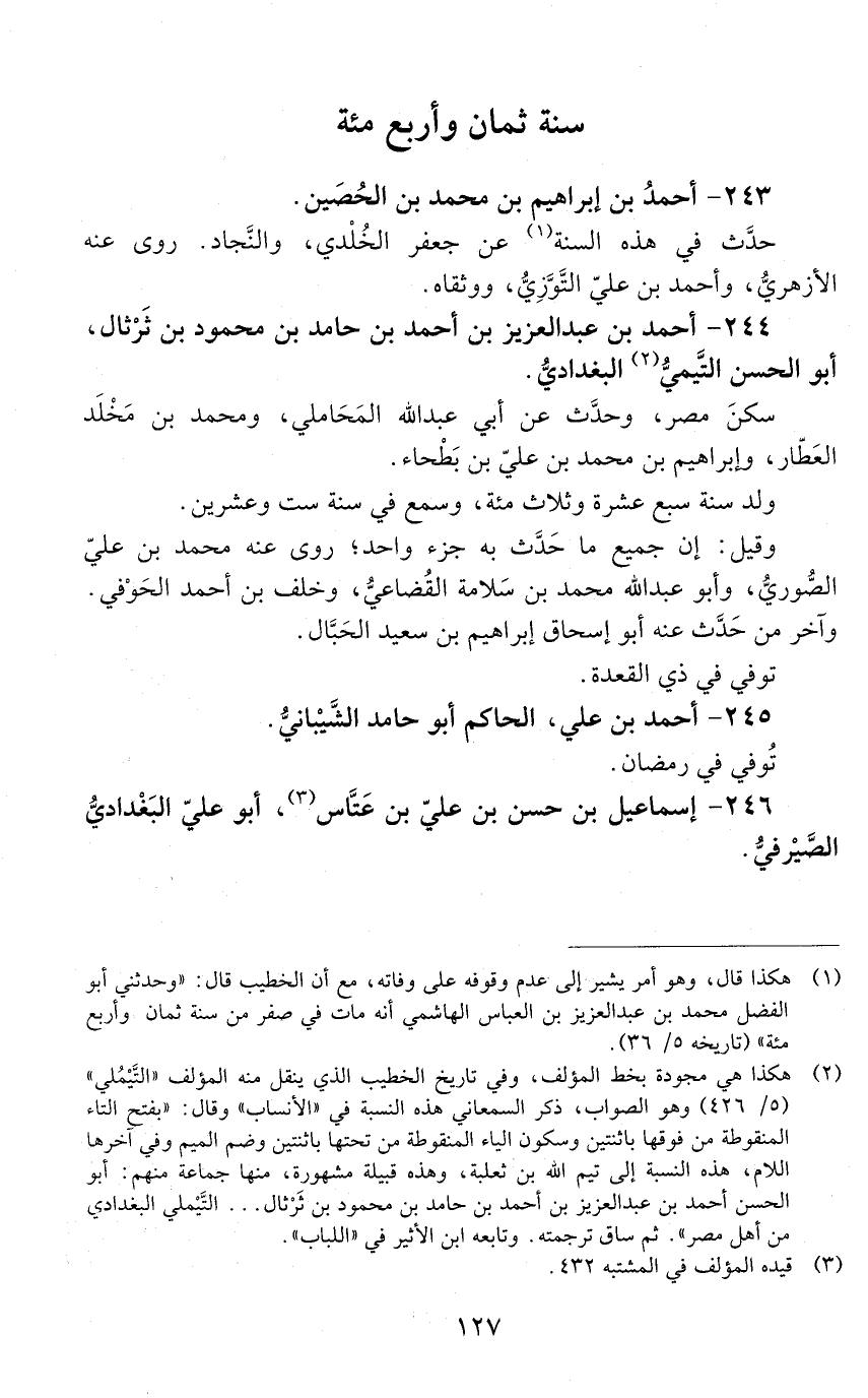 243 - أحمد بْن إبراهيم بْن محمد بْن الحُصين. [المتوفى: 408 هـ]