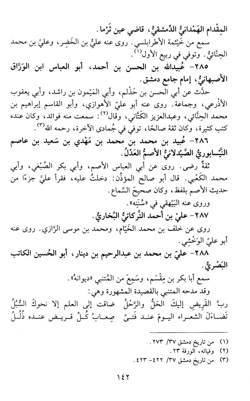 286 - عُبَيْد بْن محمد بْن محمد بْن مهديّ بْن سَعِيد بْن عاصم النَّيْسابوريّ الصَّيْدلانيّ الأصمّ العدْل. [المتوفى: 409 هـ]