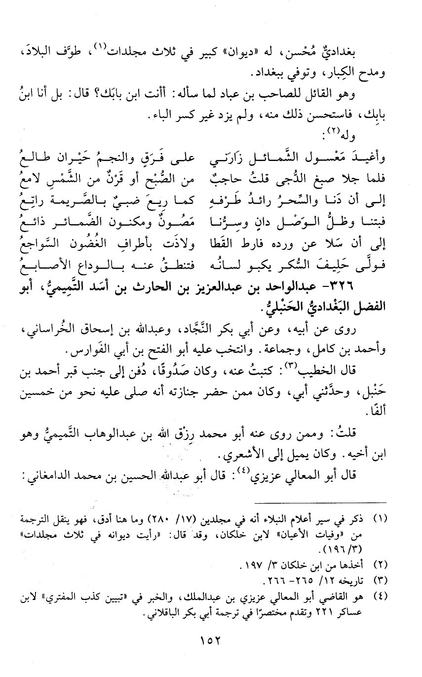 326 - عَبْد الواحد بْن عَبْد العزيز بْن الحارث بْن أسد التّميميّ، أبو الفضل البغداديّ الحنبليّ. [المتوفى: 410 هـ]