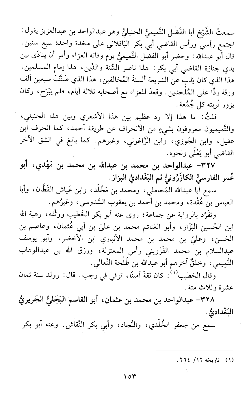 327 - عَبْد الواحد بْن مُحَمَّد بْن عَبْد اللَّه بْن مُحَمَّدِ بْن مهديّ، أبو عُمَر الفارسيّ الكازرُوني، ثم البغدادي البزّاز. [المتوفى: 410 هـ]