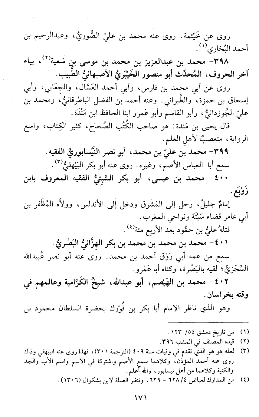 398 - محمد بن عبد العزيز بن محمد بْن موسى بْن سَعْيه، بياء آخر الحروف، المحدث أبو منصور الخيبري الأصبهاني الطبيب. [الوفاة: 401 - 410 هـ]