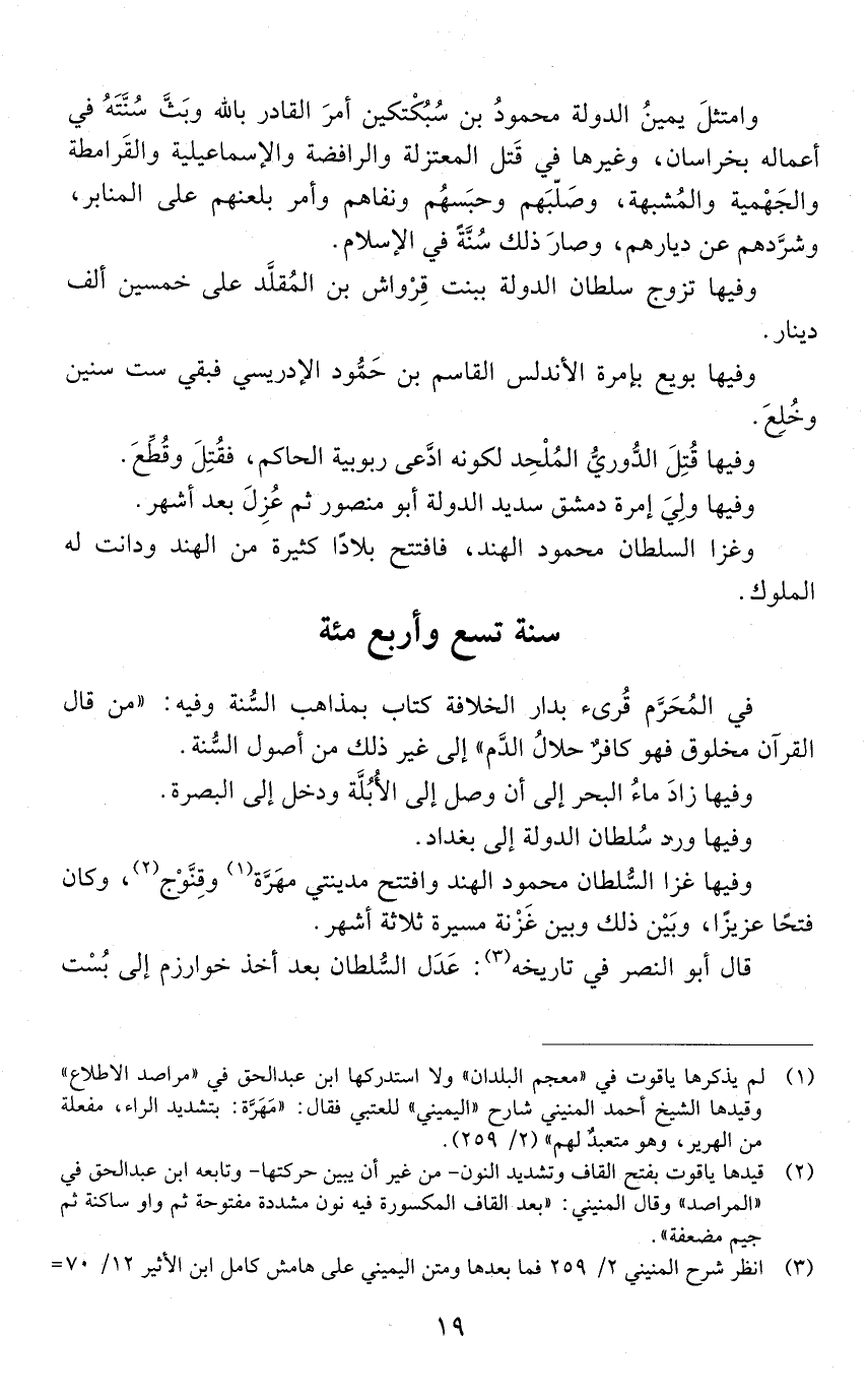 وفيها غزا السلطان محمود الهند، وافتتح مدينتي مهرة وقنوج، وكان فتحًا عزيزًا، وبين ذلك وبين غَزْنَة مسيرة ثلاثة أشهر.
