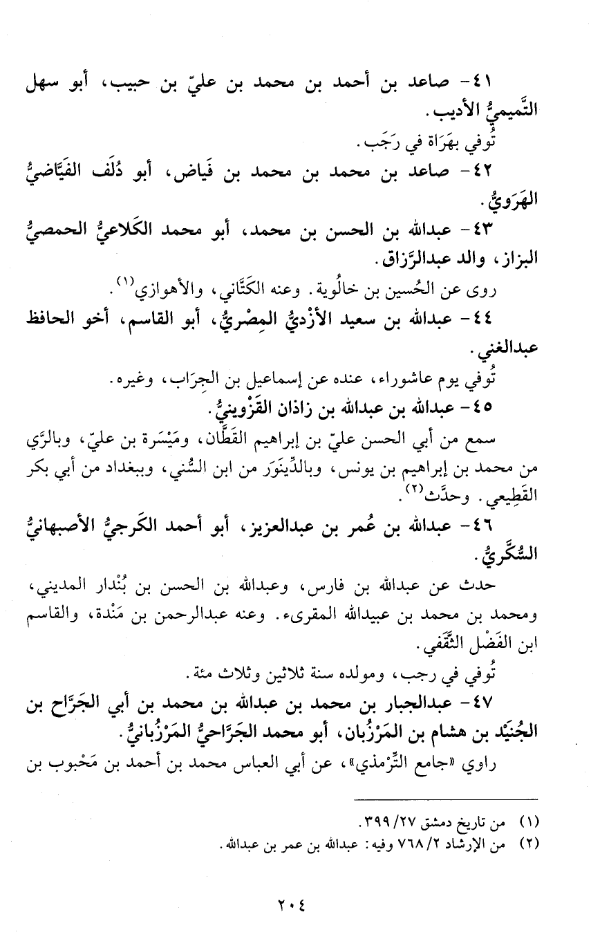 46 - عَبْد الله بْن عُمَر بْن عَبْد العزيز، أبو أحمد الكرجي الأصبهاني السُكري. [المتوفى: 412 هـ]