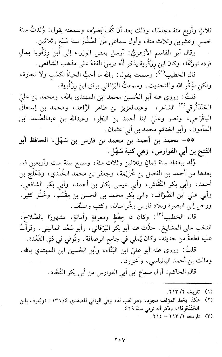 55 - محمد بْن أحمد بْن محمد بْن فارس بْن سهل، الحافظ أبو الفتح بْن أبي الفوارس، وهي كنيه سهل. [المتوفى: 412 هـ]