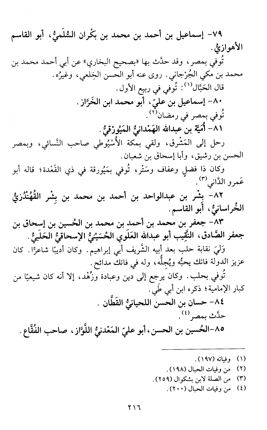 83 - جعفر بْن محمد بْن أحمد بْن محمد بْن الحسين بْن إِسْحَاق بْن جعفر الصّادق، النّقيب أبو عَبْد الله العَلَويّ الحسيني الإسحاقيّ الحلبيّ. [المتوفى: 413 هـ]