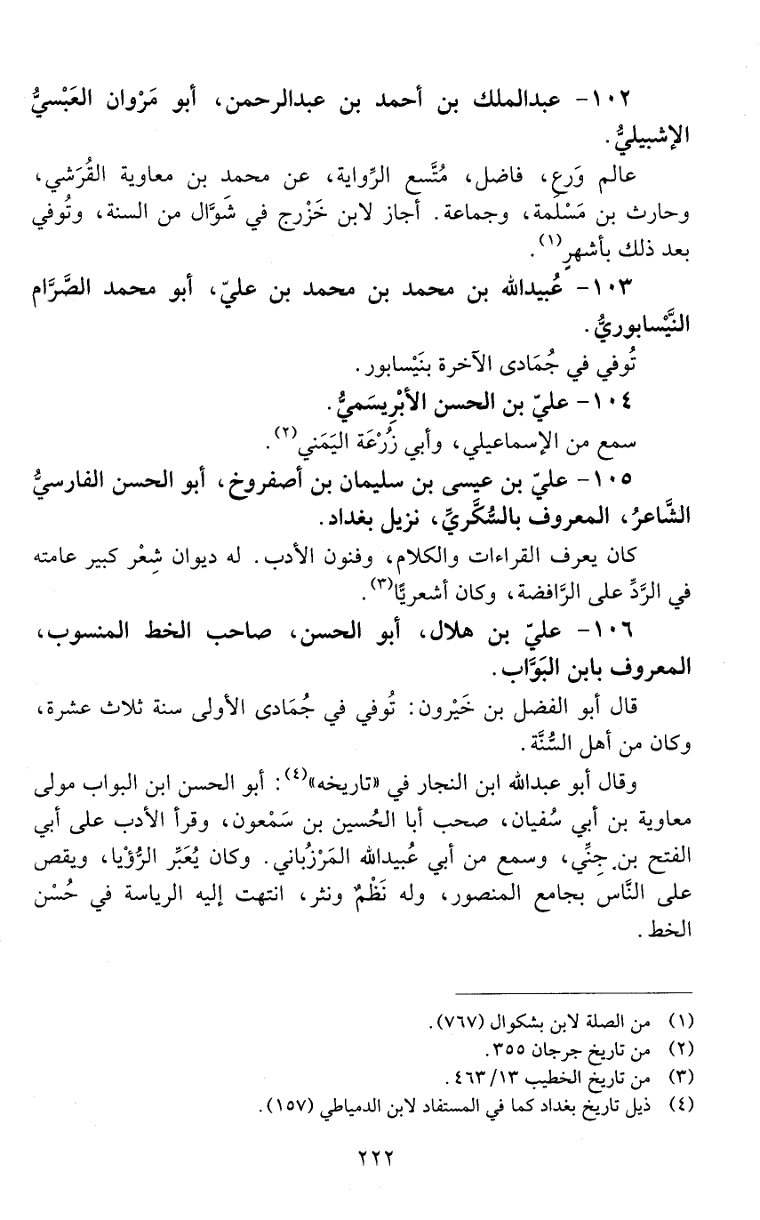 106 - عليّ بْن هلال، أبو الحَسَن، صاحب الخطّ المنسوب، المعروف بابن البّواب. [المتوفى: 413 هـ]
