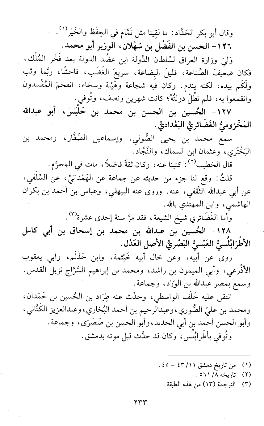 127 - الحسين بْن الحَسَن بْن محمد بْن حَلْبَس، أبو عَبْد الله المخزوميّ الغَضَائريّ البغداديّ. [المتوفى: 414 هـ]