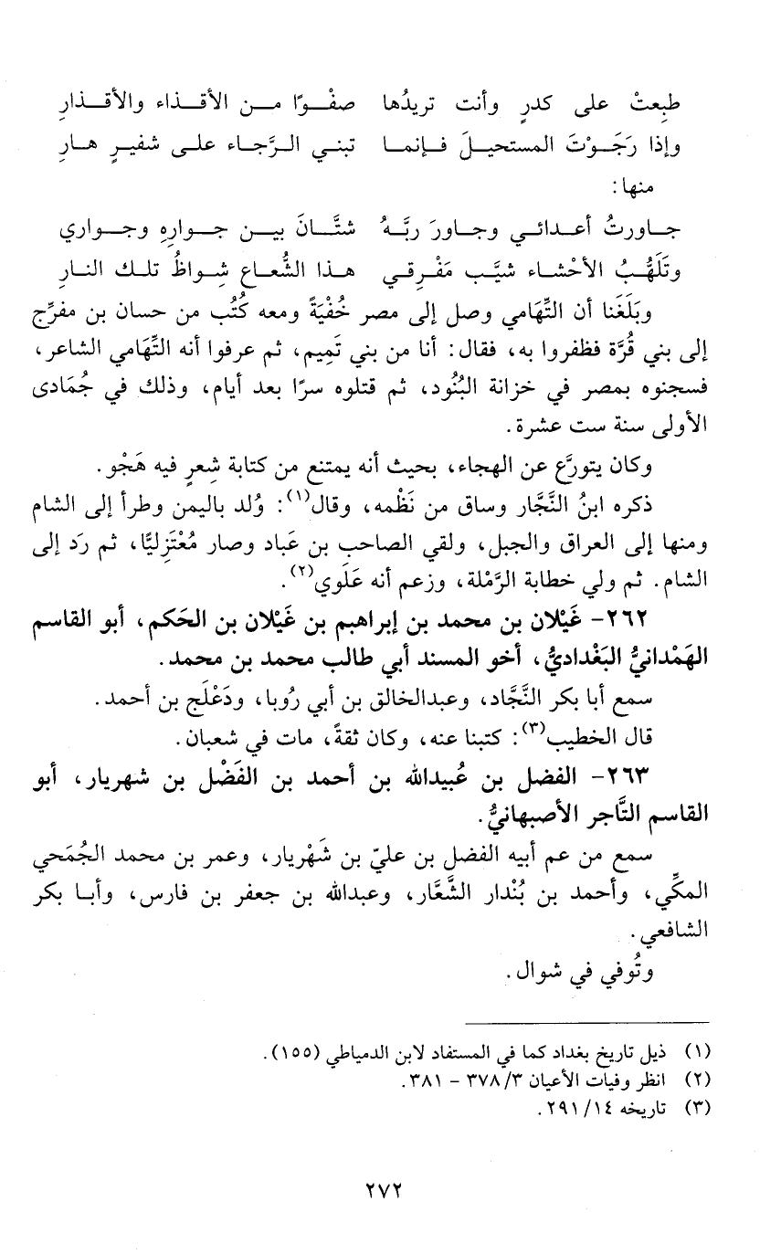 262 - غَيْلان بْن محمد بن إبراهيم بْن غَيْلان بْن الحَكَم، أبو القاسم الهمَدانيّ البغداديّ، [المتوفى: 416 هـ]