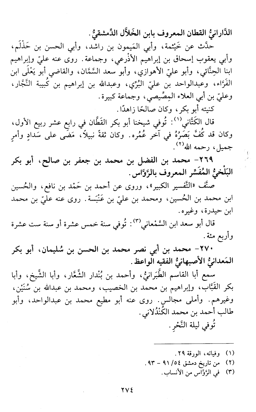269 - محمد بْن الفضل بْن محمد بْن جعفر بْن صالح، أبو بَكْر البلْخي، المفسّر المعروف بالرّوّاس. [المتوفى: 416 هـ]