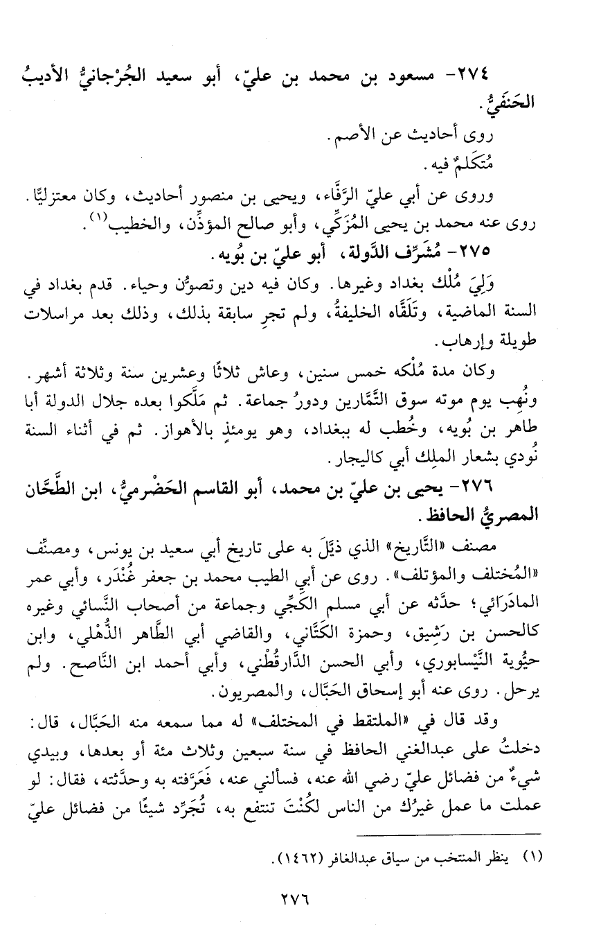 276 - يحيى بن علي بن محمد، أبو القاسم الحضْرميّ، ابن الطّحّان الْمَصْرِيّ الحافظ. [المتوفى: 416 هـ]
