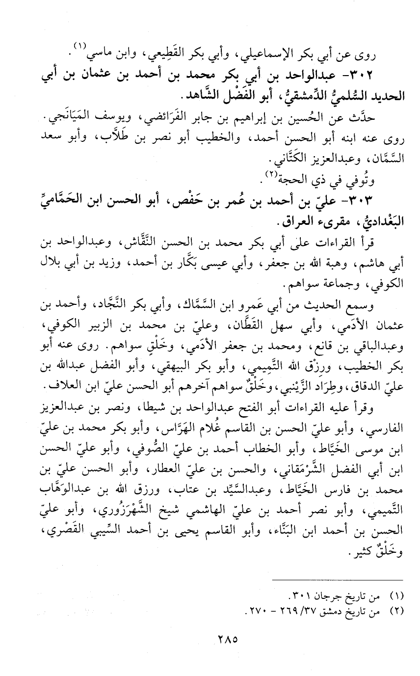 303 - عليّ بْن أحمد بْن عمر بن حَفْص، أبو الحَسَن ابن الحمّاميّ البغداديّ، [المتوفى: 417 هـ]