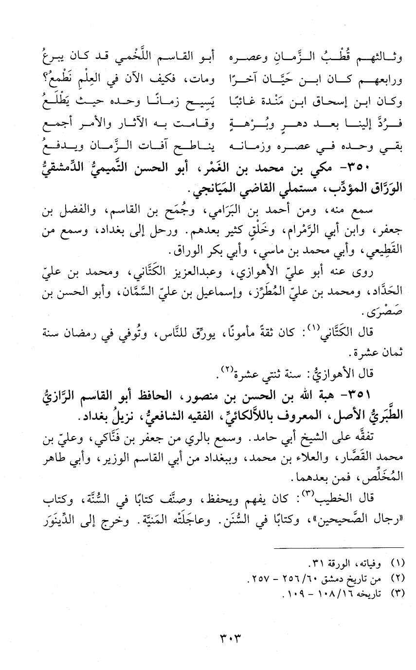351 - هبة الله بْن الحَسَن بْن منصور، الحافظ أبو القاسم الرّازيّ الطَّبَريّ الأصل، المعروف باللالكائي، الفقيه الشّافعيّ، [المتوفى: 418 هـ]