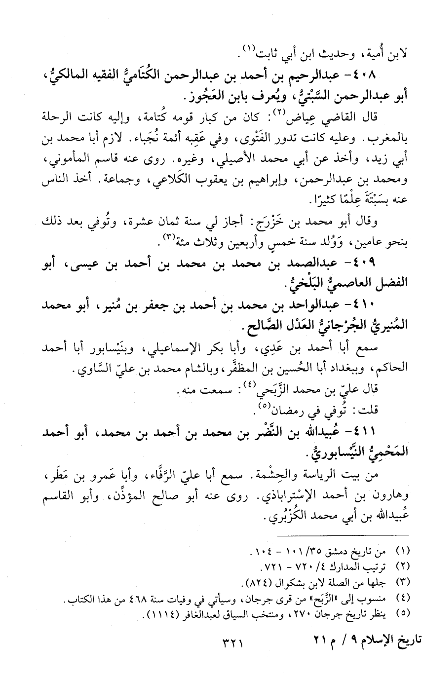 408 - عَبْد الرحيم بْن أحمد بْن عَبْد الرَّحْمَن الكُتامي الفقيه المالكيّ، أبو عَبْد الرَّحْمَن السَّبْتيّ، ويُعرف بابن العجوز. [المتوفى: 420 هـ]