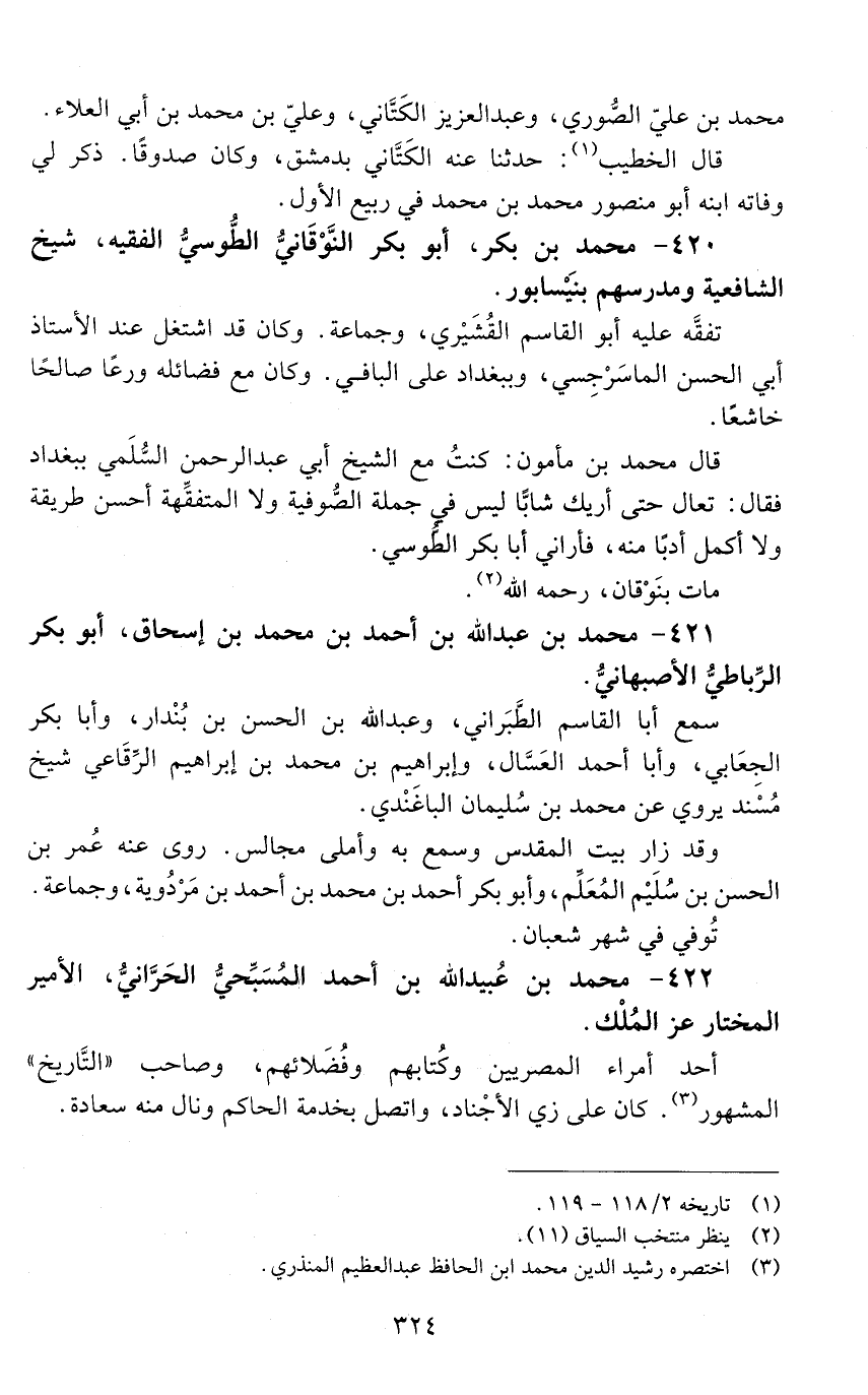 421 - محمد بْن عَبْد اللَّه بْن أحمد بن محمد بْن إِسْحَاق، أبو بَكْر الرّباطيّ الإصبهانيّ. [المتوفى: 420 هـ]