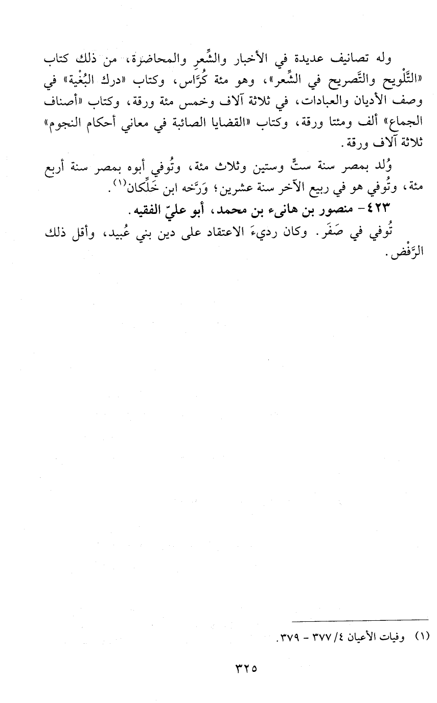 423 - منصور بْن هانئ بْن محمد، أبو عليّ الفقيه. [المتوفى: 420 هـ]