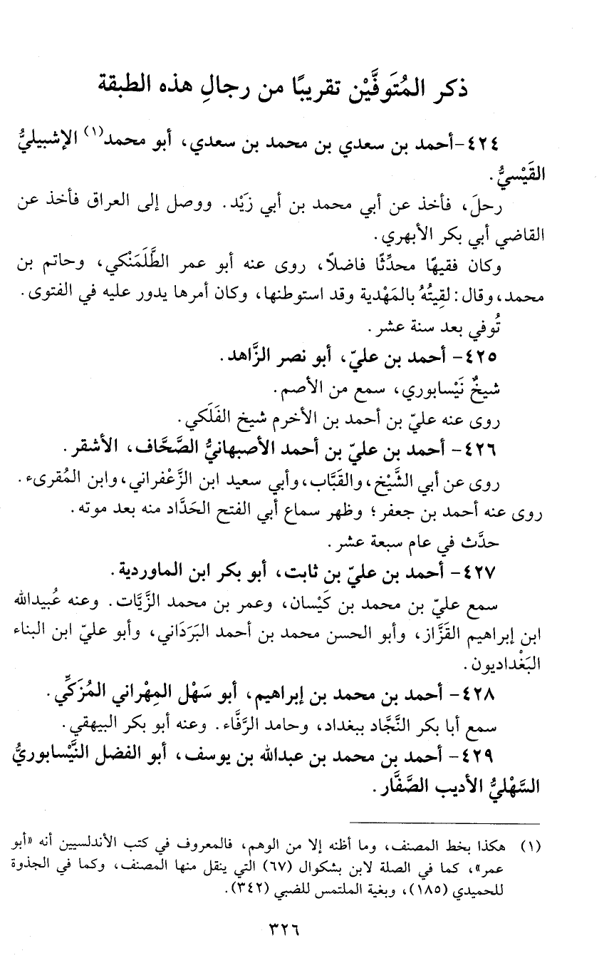 429 - أحمد بن محمد بن عبد الله بن يوسف، أبو الفضل النَّيْسابوريّ السَّهْليّ الأديب الصَّفّار. [الوفاة: 411 - 420 هـ]-[327]-