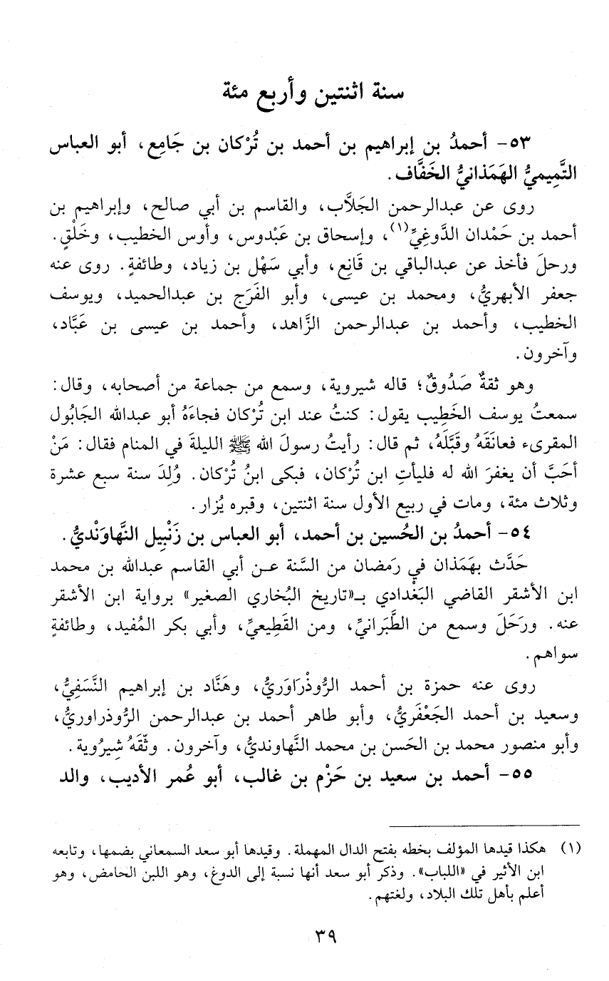 53 - أحمد بْن إبراهيم بْن أحمد بْن تُركان بن جامع، أبو العباس التميمي الهمذاني الخفاف. [المتوفى: 402 هـ]