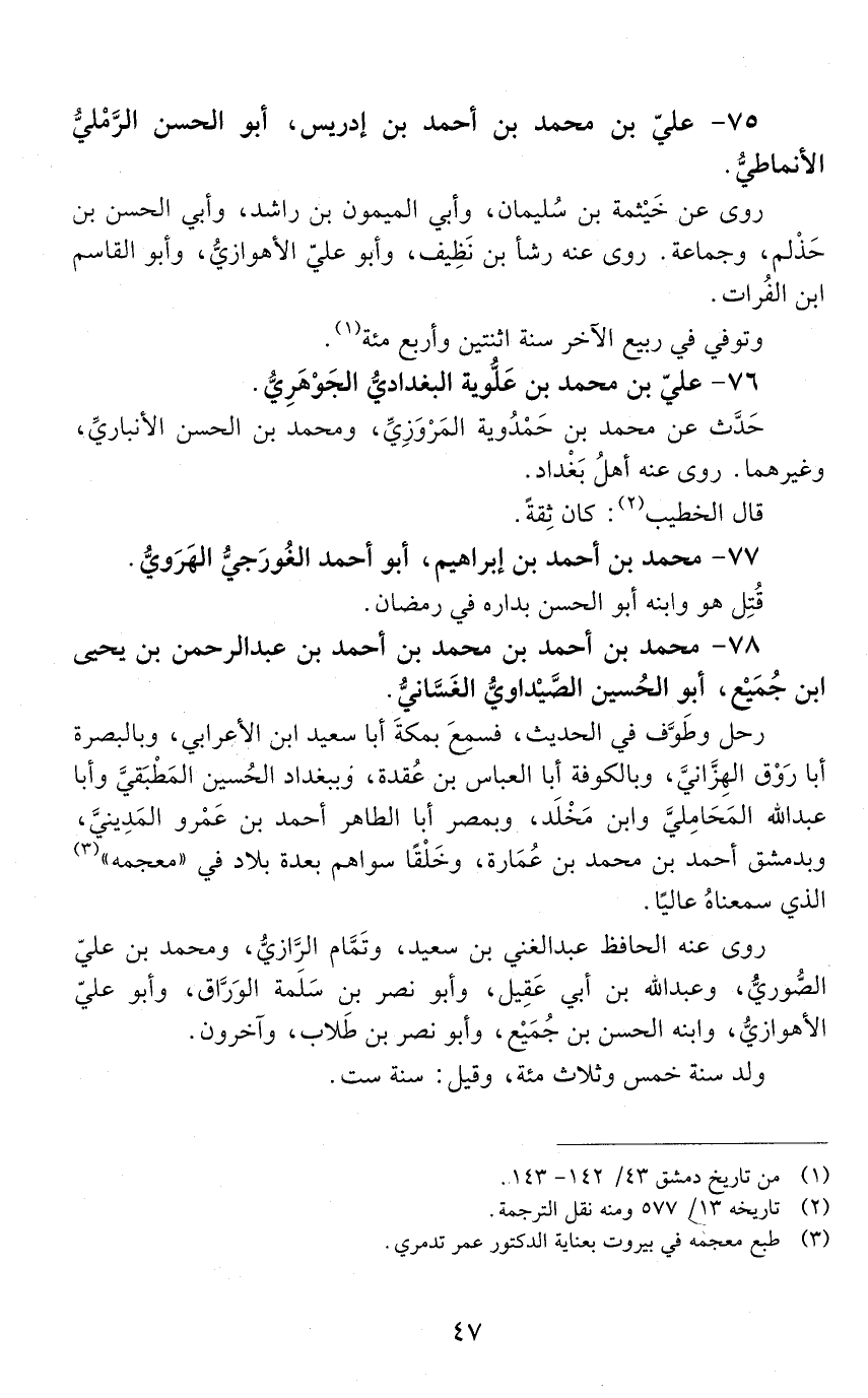 78 - محمد بْن أحمد بْن محمد بن أحمد بن عبد الرحمن بن يحيى بْن جُمَيْع، أبو الحُسَين الصَّيْداويّ الغسّانيّ. [المتوفى: 402 هـ]