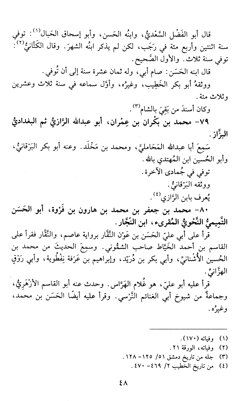 80 - محمد بْن جعفر بْن محمد بْن هارون بْن فَرْوة، أبو الحسن التميمي النحوي المقرئ، ابن النّجّار. [المتوفى: 402 هـ]