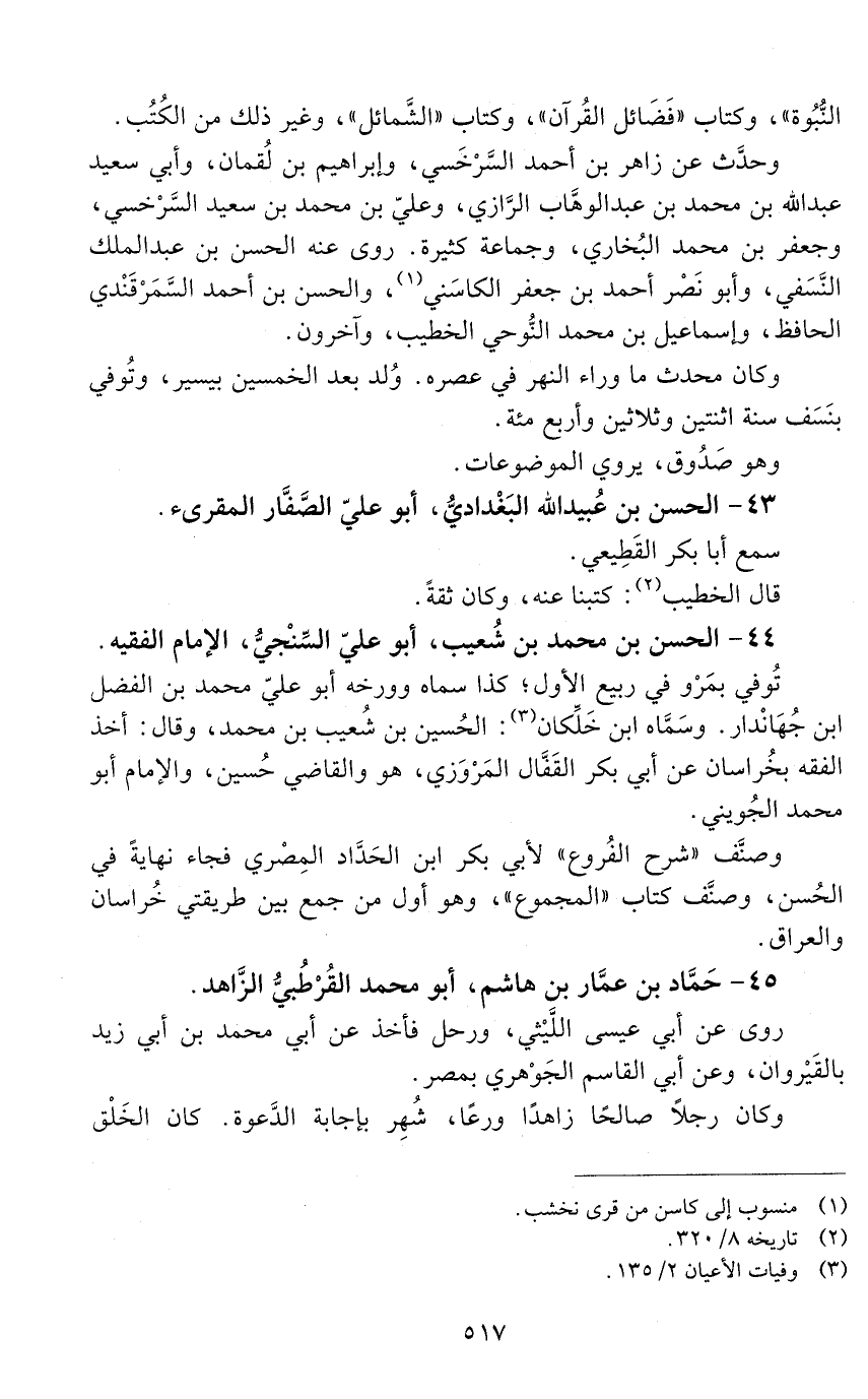 44 - الحسن بن محمد بن شُعَيْب، أبو عليّ السَّنْجيّ، الإمام الفقيه. [المتوفى: 432 هـ]
