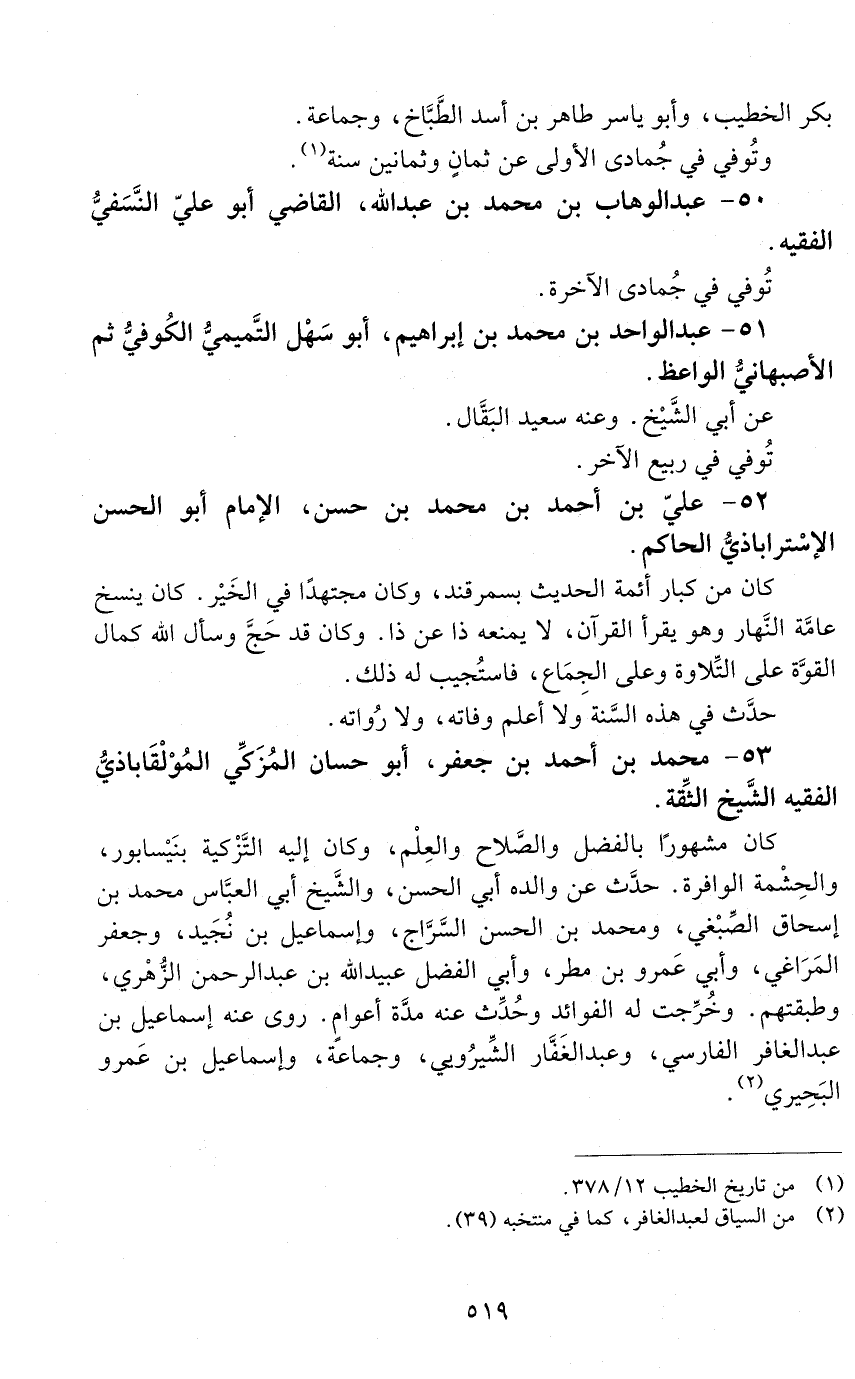 51 - عبد الواحد بن محمد بن إبراهيم، أبو سهل التّميميّ الكوفيّ، ثمّ الأصبهاني الواعظ. [المتوفى: 432 هـ]