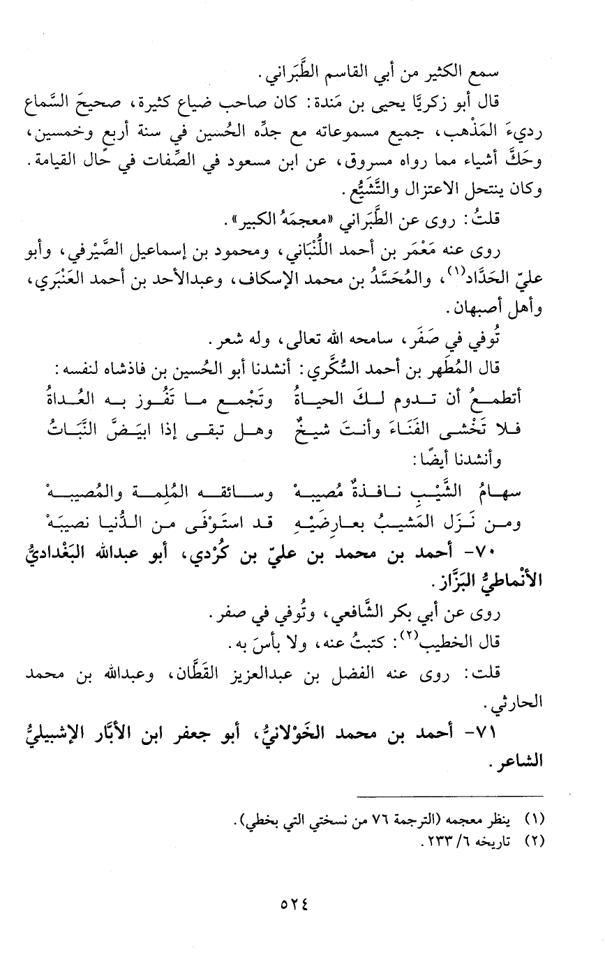 70 - أحمد بن محمد بن عليّ بن كُرْديّ أبو عبد الله البغداديّ الأنْماطيّ البزّاز. [المتوفى: 433 هـ]