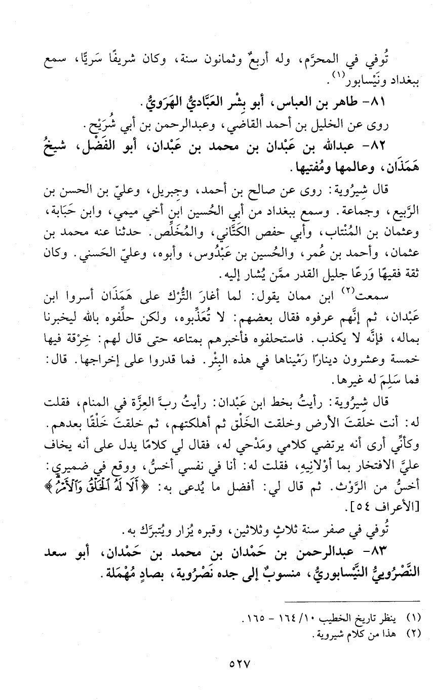 81 - طاهر بن العبّاس، أبو بِشْر العَبّاديّ الهَرَويّ. [المتوفى: 433 هـ]