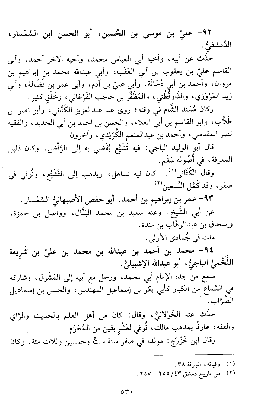 92 - عليّ بن موسى بن الحسين، أبو الحسن ابن السّمْسار الدّمشقيّ. [المتوفى: 433 هـ]