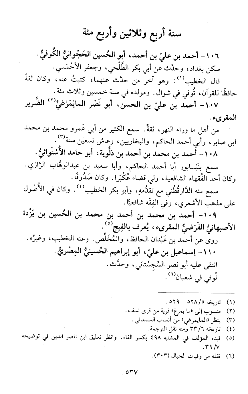 106 - أحمد بن عليّ بن أحمد، أبو الحسين الحجواني الكوفيّ. [المتوفى: 434 هـ]