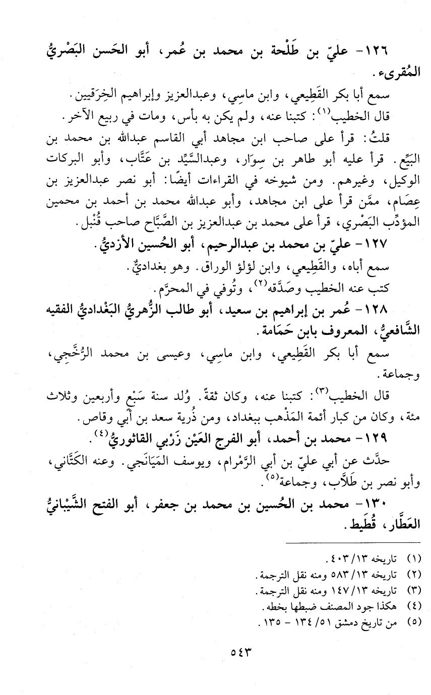 126 - عليّ بن طلحة بن محمد بن عمر، أبو الحسن البصْريّ المقرئ. [المتوفى: 434 هـ]
