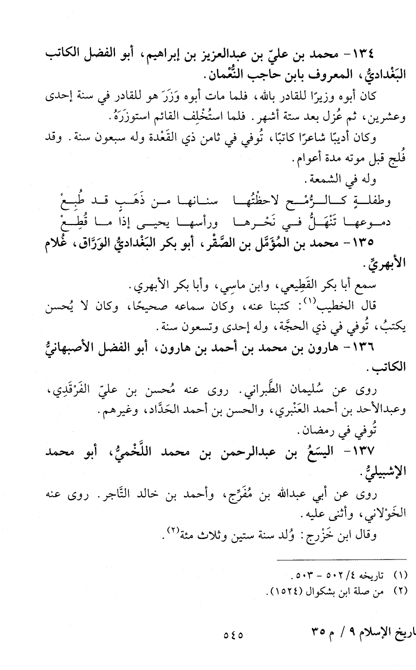 134 - محمد بن عليّ بن عبد العزيز بن إبراهيم، أبو الفضل الكاتب البغداديّ، المعروف بابن حاجب النُّعمان. [المتوفى: 434 هـ]