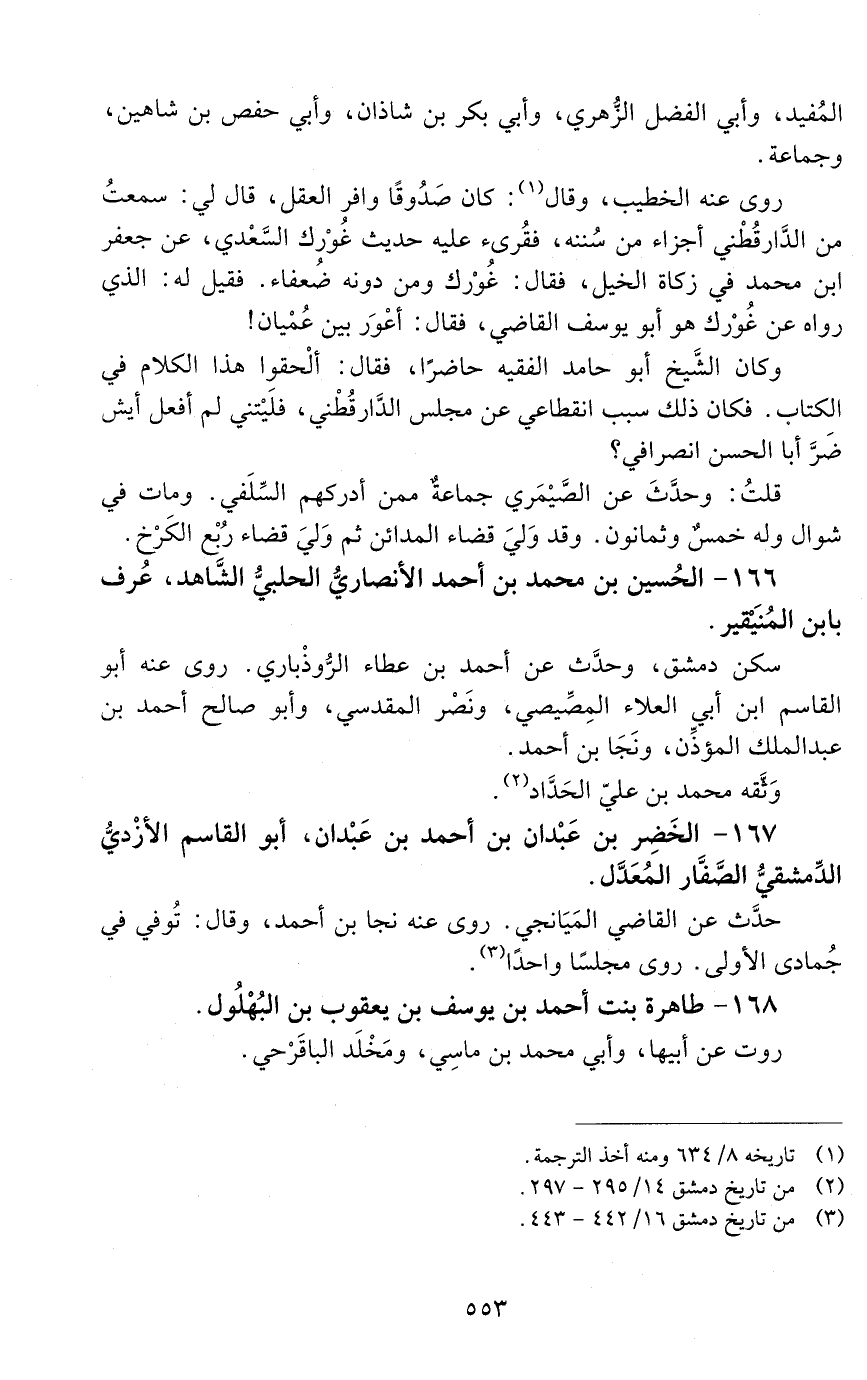166 - الحسين بن محمد بن أحمد الأنصاريّ الحلبيّ الشّاهد، عُرِف بابن المُنَيْقير. [المتوفى: 436 هـ]