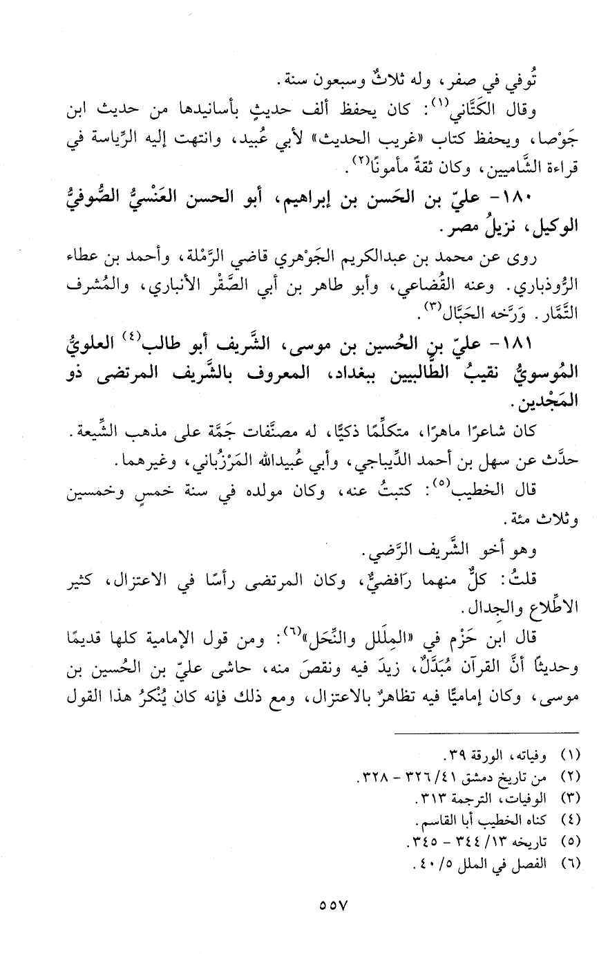 181 - عليّ بن الحسين بن موسى، الشّريف أبو طالب العلويّ المُوسَوِيّ نقيب الطّالبيّين ببغداد، المعروف بالشّريف المرتضى ذو المجدين. [المتوفى: 436 هـ]