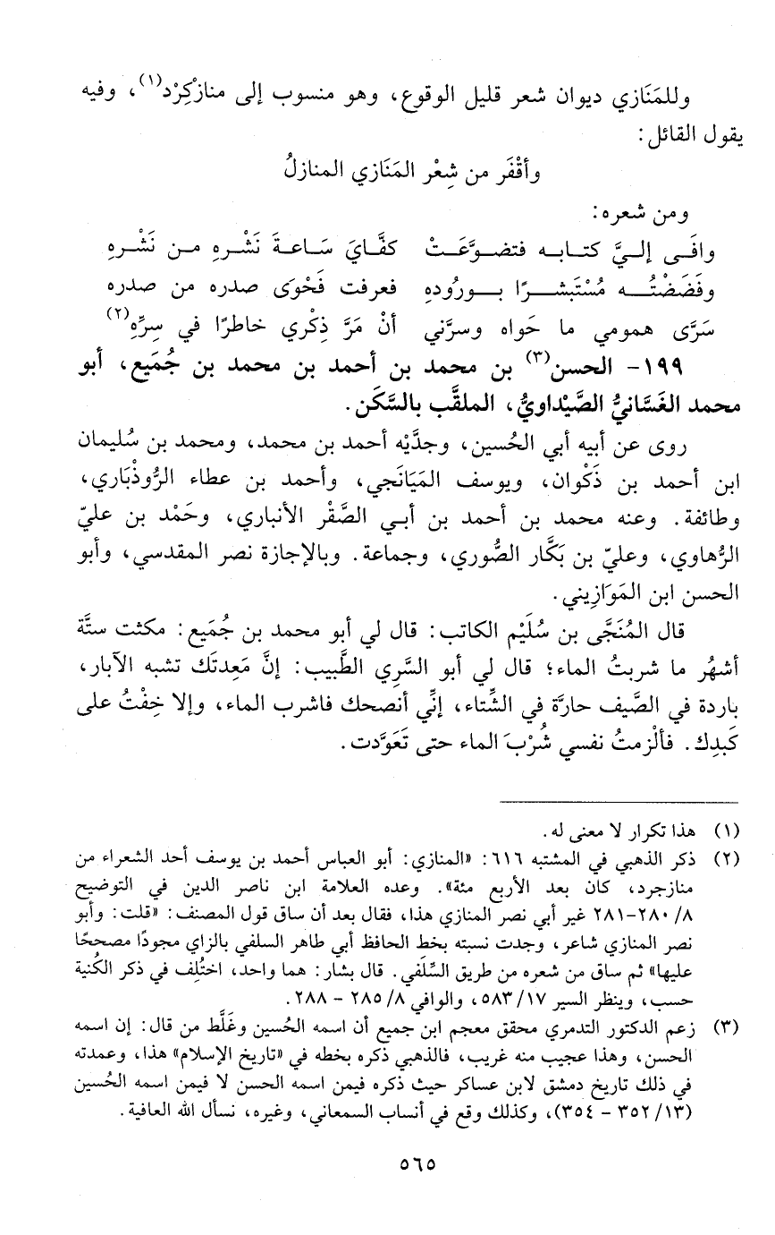 199 - الحسن بن محمد بن أحمد بن محمد بن جُمَيْع، أبو محمد الغسّانيّ الصَّيْدَاويّ، المُلقَّب بالسَّكَن. [المتوفى: 437 هـ]