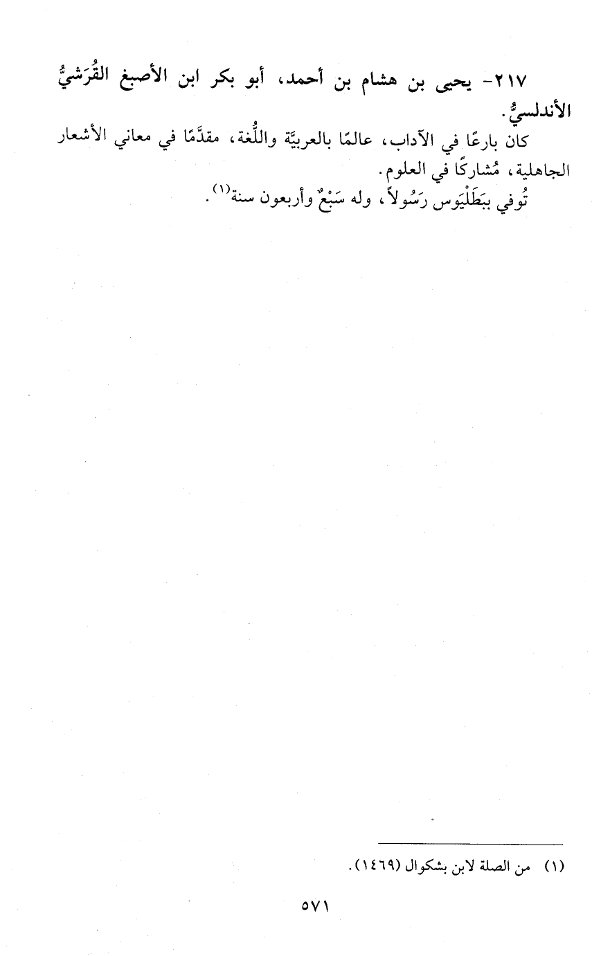 217 - يحيى بن هشام بن أحمد، أبو بكر ابن الأصْبَغ القُرَشيّ الأندلسيّ. [المتوفى: 437 هـ]