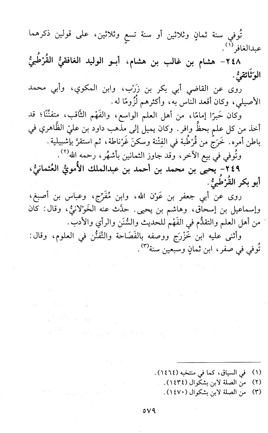 249 - يحيى بن محمد بن أحمد بن عبد الملك الأُمويّ العُثمانيّ، أبو بكر القُرْطُبيّ. [المتوفى: 438 هـ]