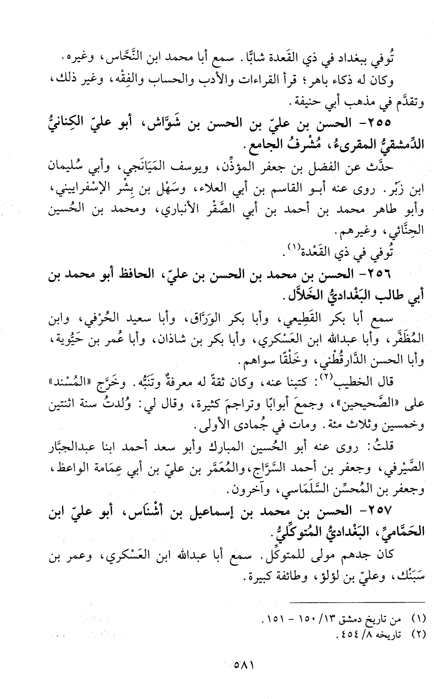 257 - الحسن بن محمد بن إسماعيل بن أشناس، أبو عليّ ابن الحمّاميّ البغداديّ، المتوكّليّ. [المتوفى: 439 هـ]