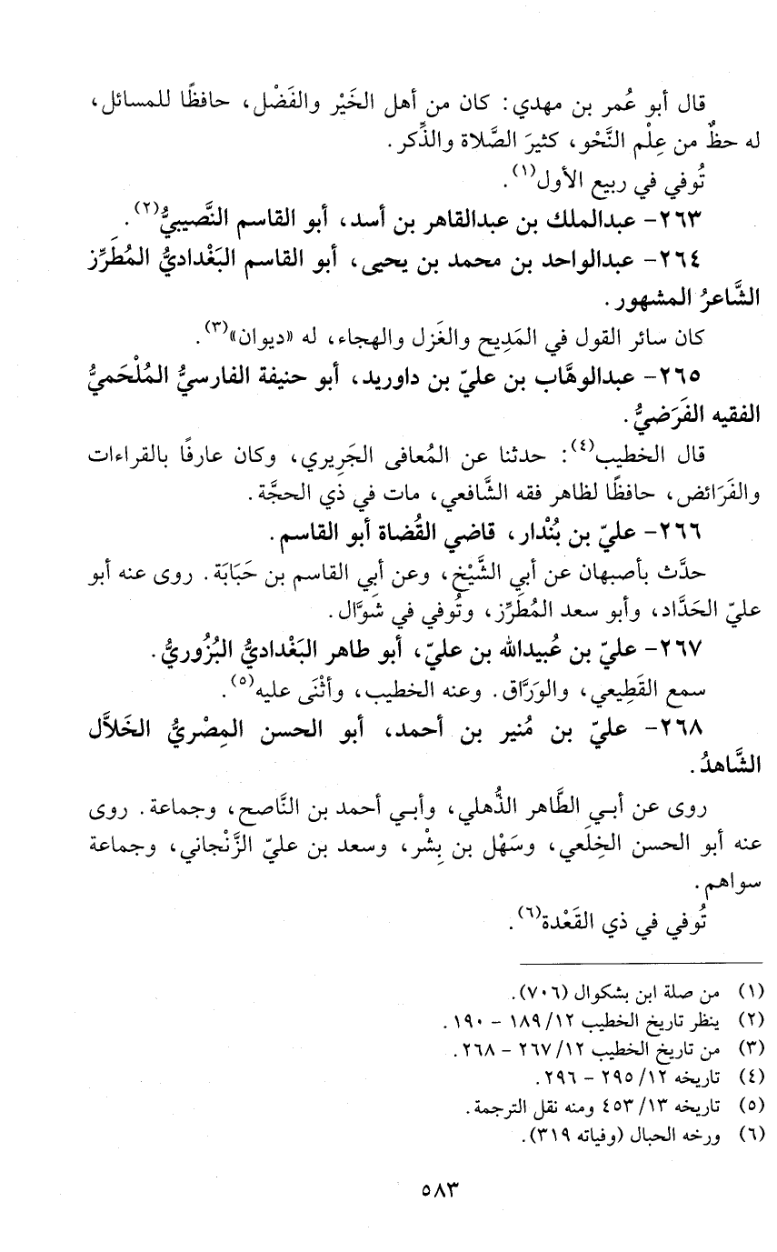 264 - عبد الواحد بن محمد بن يحيى، أبو القاسم البغداديّ المطرِّز الشّاعر المشهور. [المتوفى: 439 هـ]