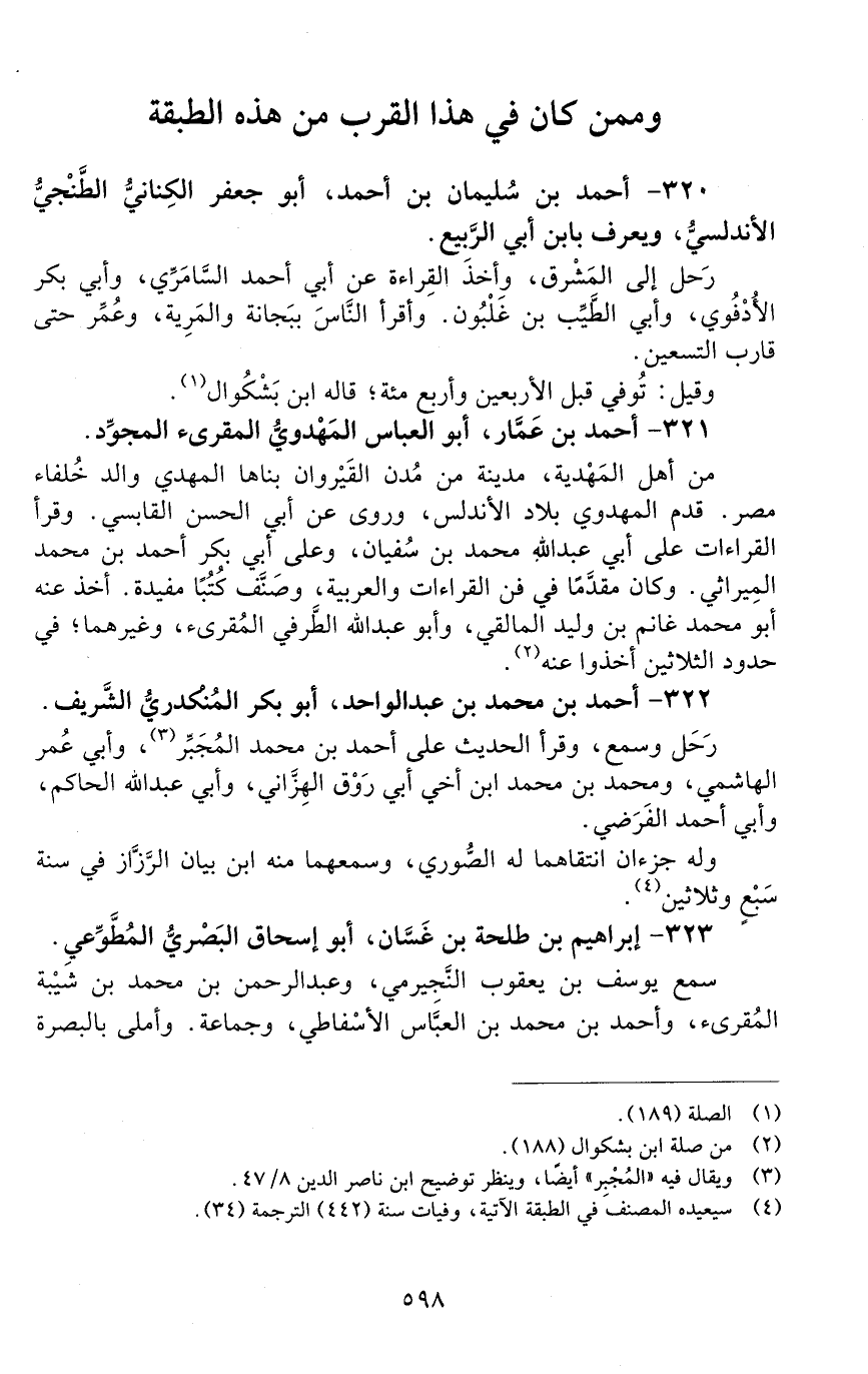 320 - أحمد بن سليمان بن أحمد، أبو جعفر الكناني الطّنْجيّ الأندلسيّ، ويُعرف بابن أبي الربيع. [الوفاة: 431 - 440 هـ]