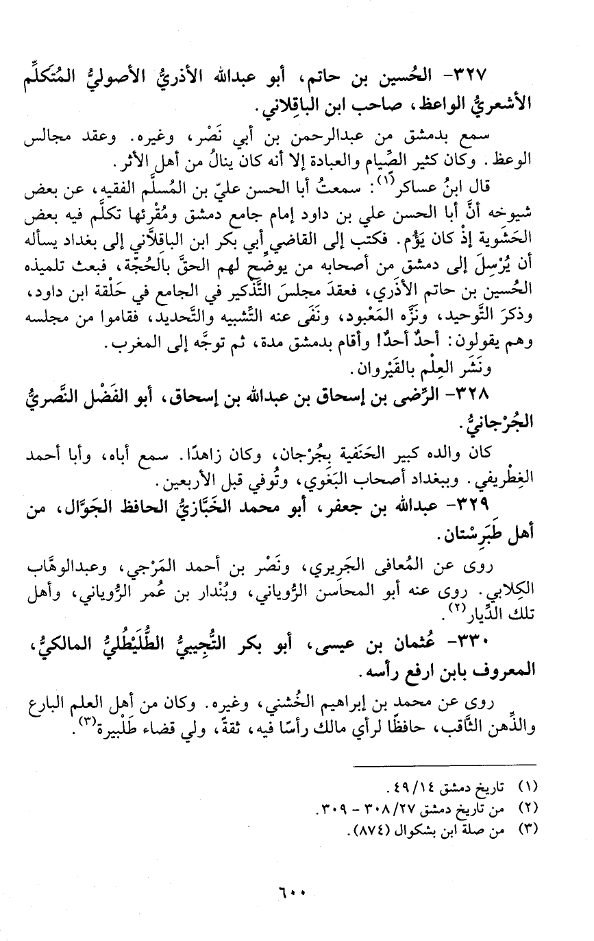 327 - الحسين بن حاتم، أبو عبد الله الأذَريّ الأُصُوليّ المتكلِّم الأشعريّ الواعظ. [الوفاة: 431 - 440 هـ]
