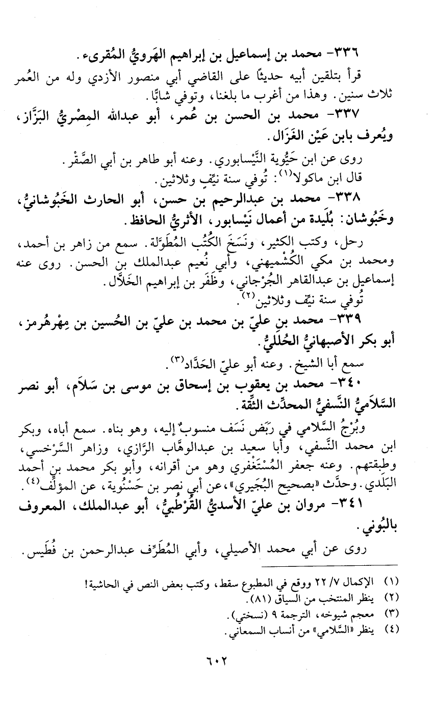 338 - محمد بن عبد الرّحيم بن حسن، أبو الحارث الخَبُوشانيّ، وخَبُوشان بُلَيْدَة من أعمال نَيْسابور، الأثريّ الحافظ. [الوفاة: 431 - 440 هـ]