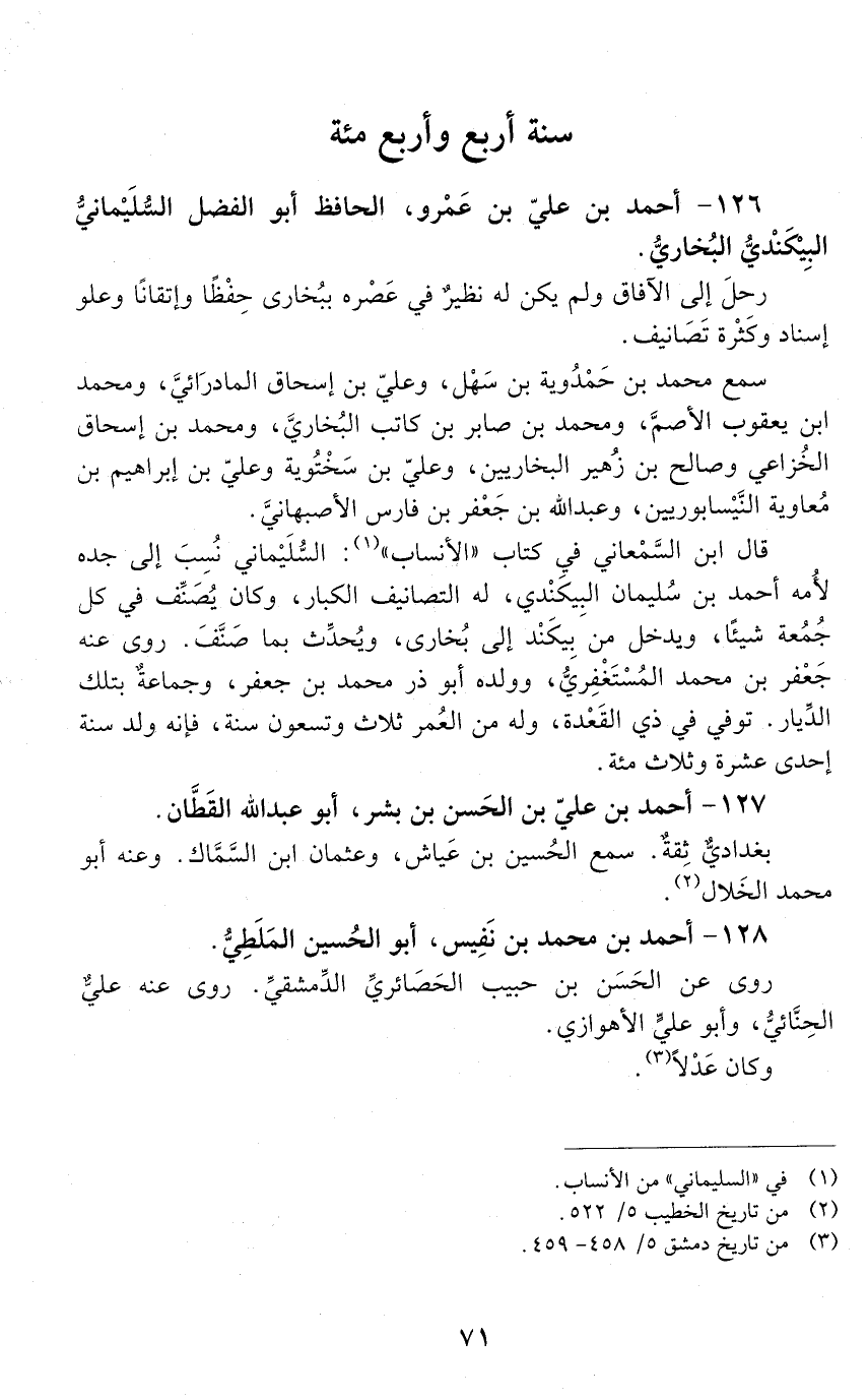 126 - أحمد بْن عليّ بْن عَمْرو، الحافظ أبو الفضل السُليماني البِيكنْدِيّ البخاريّ. [المتوفى: 404 هـ]