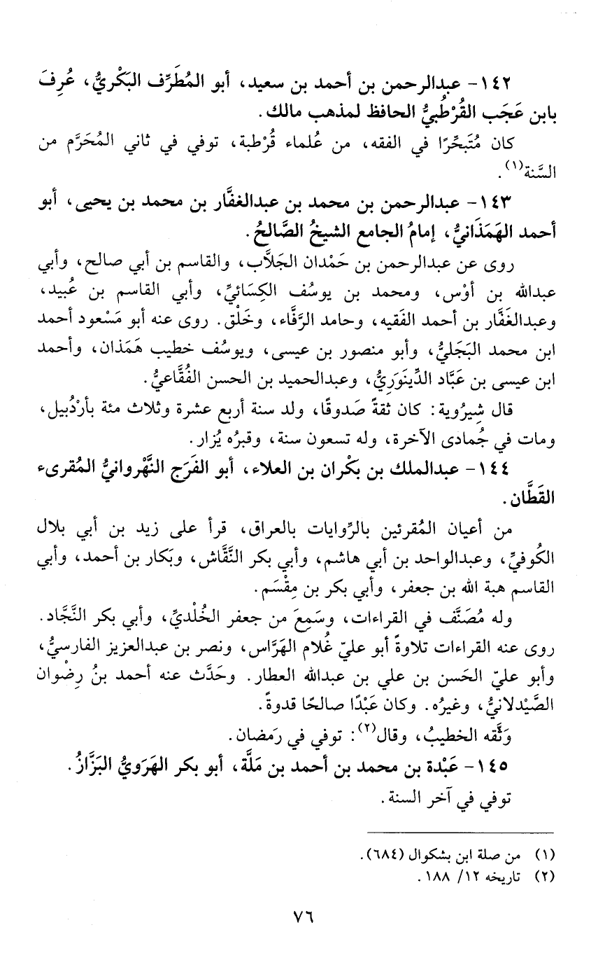 144 - عَبْد الملك بْن بكران بن العلاء، أبو الفرج النهرواني المقرئ القطّان. [المتوفى: 404 هـ]