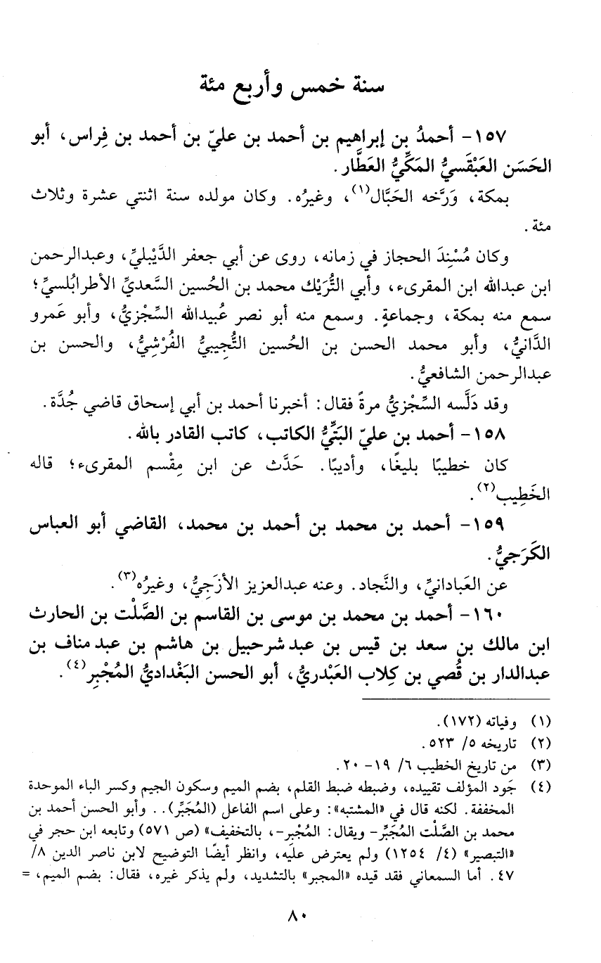 157 - أحمد بْن إبراهيم بْن أَحْمَد بْن عَلِيّ بْن أَحْمَد بْن فِراس، أبو الحَسَن العبْقَسيّ المّكّي، العطار. [المتوفى: 405 هـ]