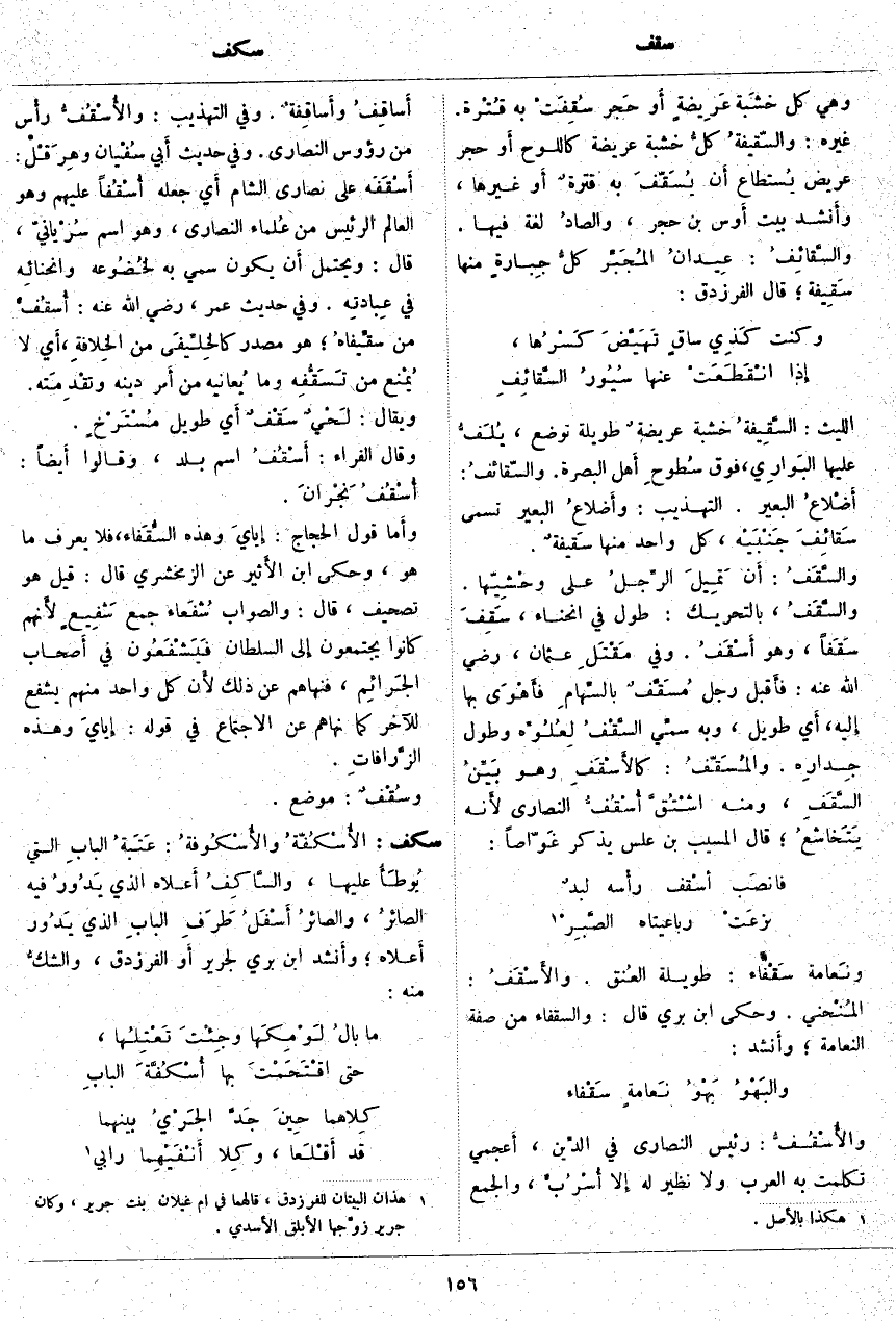 سكف: الأُسْكُفَّةُ والأَسْكُوفَةُ: عَتَبةُ البابِ الَّتِي يُوطَأُ عَلَيْهَا، والسَّاكِفُ أَعلاه الَّذِي يَدُورُ فِيهِ الصائرُ، والصائرُ أَسْفَلُ طَرَفِ البابِ الَّذِي يَدُور أَعلاه؛ وأَنشد ابْنُ بَرِّيٍّ لِجَرِيرٍ أَو الْفَرَزْدَقِ، والشكُّ مِنْهُ:
