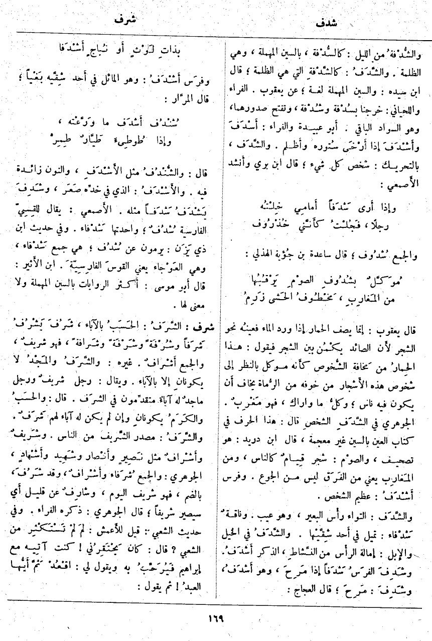 ؛ هِيَ جَمْعُ شَدْفاء، وَهِيَ العَوْجاء يَعْنِي القوسَ الفارِسِيّةَ. ابْنُ الأَثير: قَالَ أَبو مُوسَى: أَكثر الرِّوَايَاتِ بِالسِّينِ الْمُهْمَلَةِ وَلَا مَعْنَى لها.