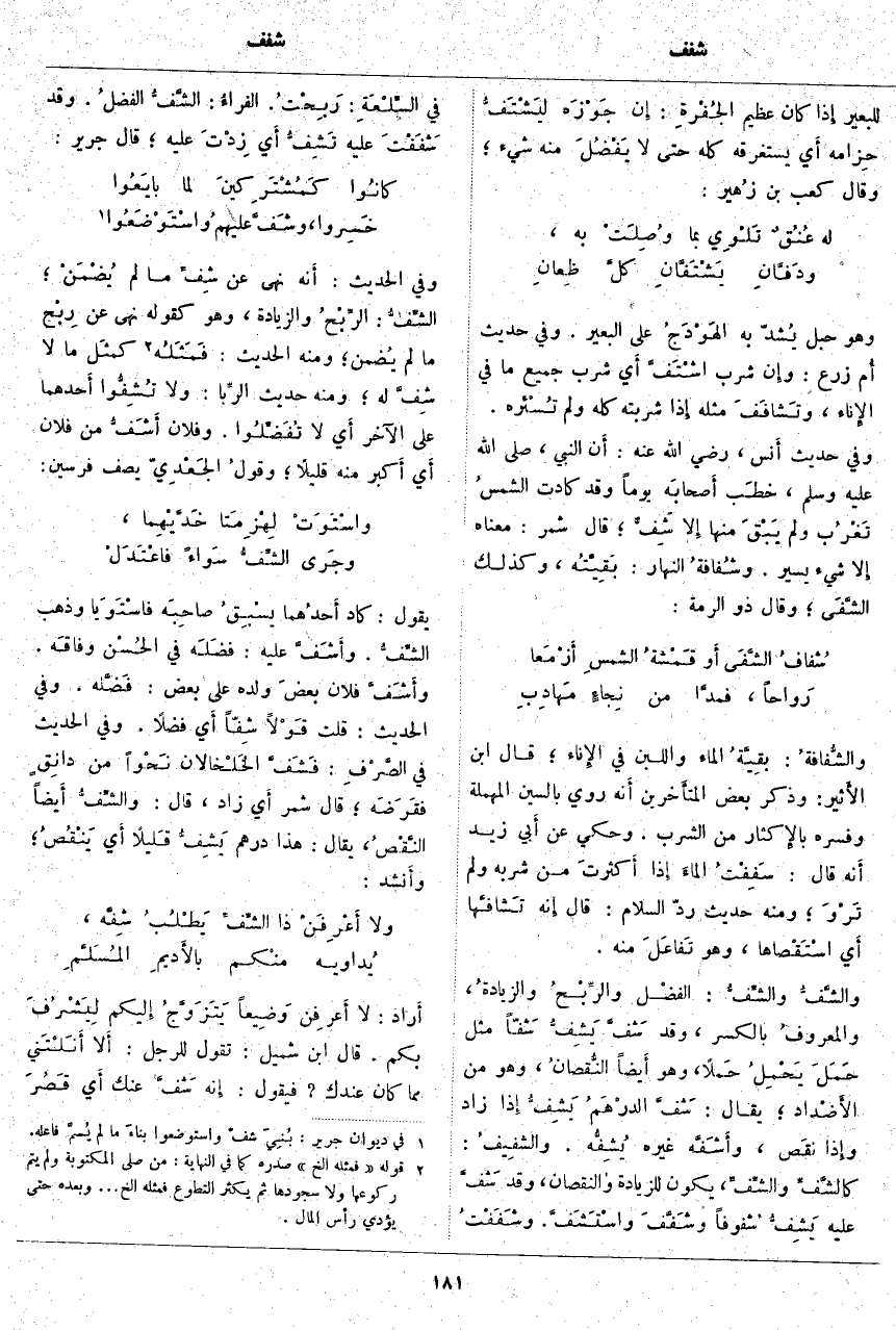 أَي اسْتَقْصاها، وَهُوَ تَفاعَلَ مِنْهُ. والشَّفُّ والشِّفُّ: الفضْل والرِّبْحُ والزيادةُ، والمعروفُ بِالْكَسْرِ، وَقَدْ شَفَّ يَشِفُّ شَفّاً مِثْلُ حَمَلَ يَحْمِلُ حَملًا، وَهُوَ أَيضاً النُّقصانُ، وَهُوَ مِنَ الأَضْداد؛ يُقَالُ: شَفَّ الدرْهَمُ يَشِفُّ إِذَا زَادَ وَإِذَا نقَص، وأَشَفَّه غَيْرُهُ يُشِفُّه. والشفِيفُ: كالشَّفِّ والشِّفِّ، يَكُونُ لِلزِّيَادَةِ وَالنُّقْصَانِ، وَقَدْ شَفَّ عَلَيْهِ يَشِفُّ شُفُوفاً وشَفَّفَ واسْتَشَفَّ. وشَفَفْتُ فِي السِّلْعَةِ: رَبِحْتُ. الفراءُ: الشَّفُّ الفضلُ. وَقَدْ شَفَفْتَ عَلَيْهِ تَشِفُّ أَي زِدْتَ عَلَيْهِ؛ قَالَ جَرِيرٌ: