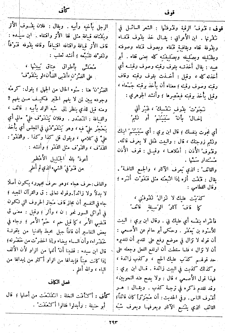 ؛ القَائِف الَّذِي يتَتبع الْآثَارَ وَيَعْرِفُهَا وَيَعْرِفُ شبَه الرَّجُلِ بأَخيه وأَبيه. وَيُقَالُ: فُلَانٌ يقُوف الأَثر ويَقْتَافُه قِيَافَة مِثْلَ قَفَا الأَثر وَاقْتَفَاهُ. ابْنُ سِيدَهْ: قَافَ الأَثر قِيَافَة واقْتَافَه اقْتِيَافاً وقَافَه يَقُوفُه قَوْفاً وتَقَوَّفُه تتَبَّعه؛ أَنشد ثَعْلَبٌ: