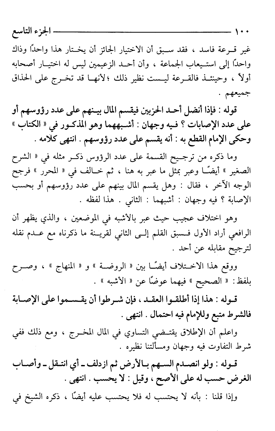 وما ذكره من ترجيح القسمة على عدد الرؤوس ذكر مثله في "الشرح الصغير" أيضًا وعبر بمثل ما عبر به هنا، ثم خالف في "المحرر" فرجح الوجه الآخر، فقال: وهل يقسم المال بينهم على عدد رؤوسهم أو بحسب الإصابة؟ فيه وجهان: أشبهما: الثاني. هذا لفظه.